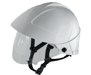 Industrial helmet with integrated face shield. Approved for protecting against the thermal energy of an electric arc.